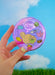 Just. Look. At. How. CUTE! This pipe features an adorable cat illustration surrounded by it's favorite feast, drawn by the talented Claire Shadomy! Made from thick, high quality borosilicate glass with a gorgeous pink iridescent finish. The bowl is on the top, the carb is on the left side, and the mouthpiece is on the bottom end. Lays flat on a table so you don't have to worry about it rolling away! Comes in a custom box, perfect for gifting!